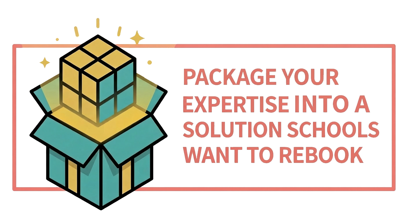 You learn how to package your expertise, talk to decision-makers, and secure multi-day agreements schools fund and renew.